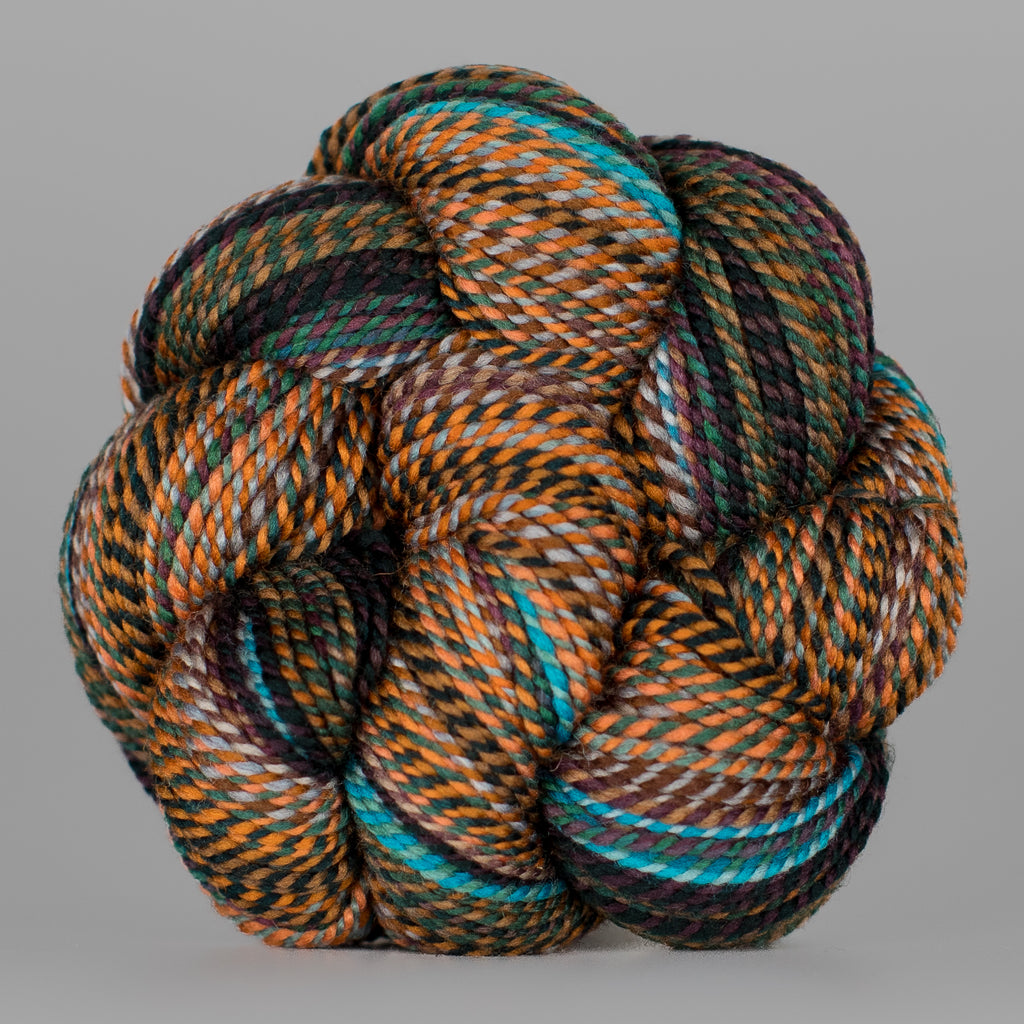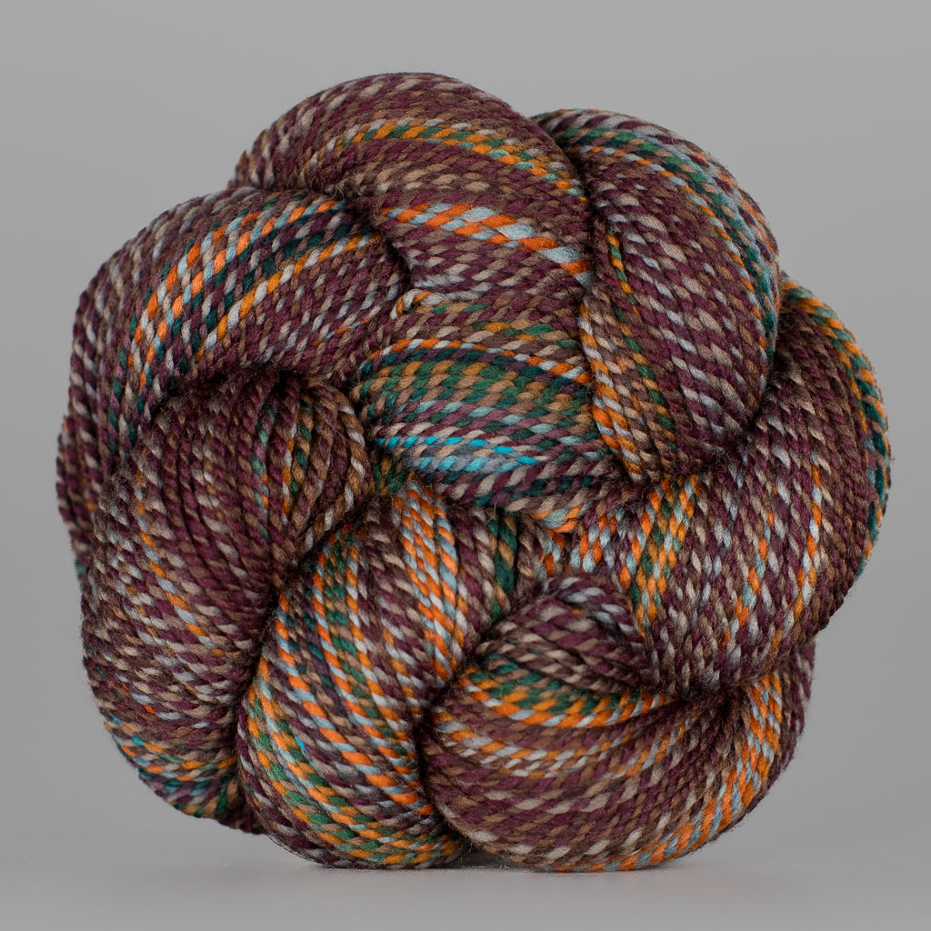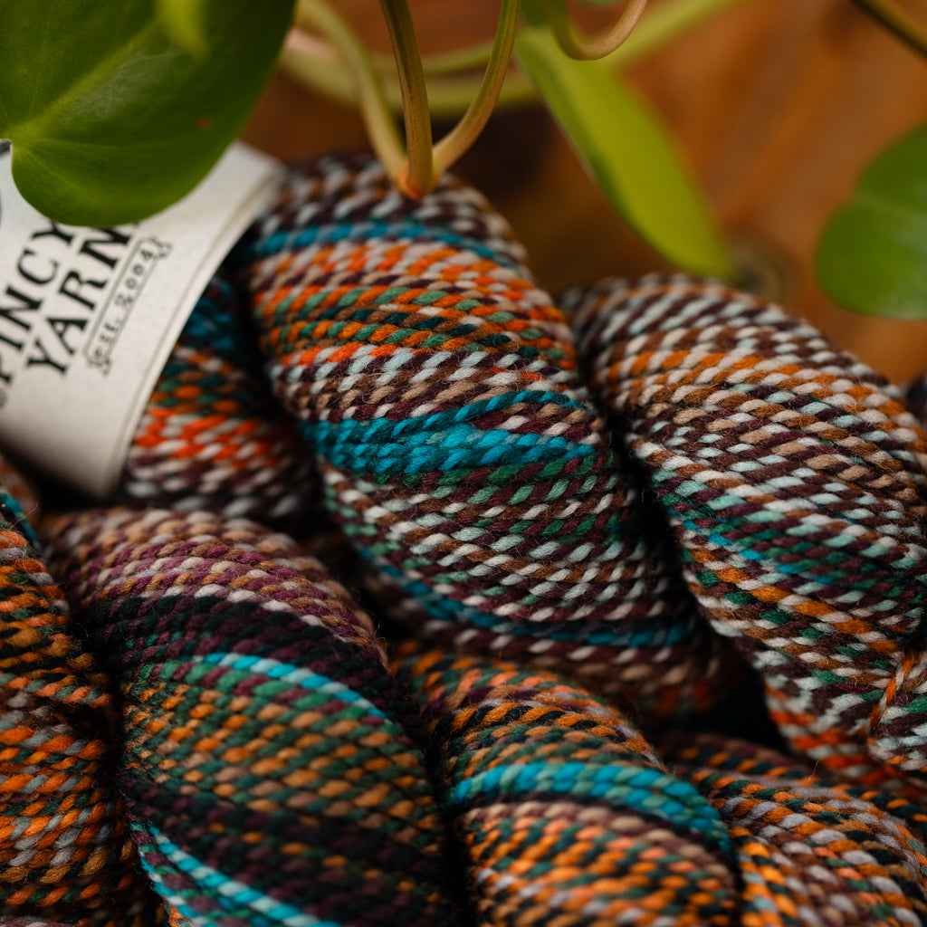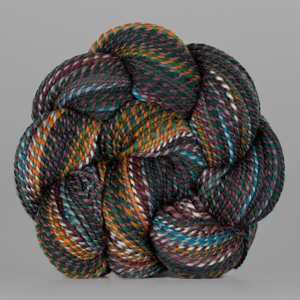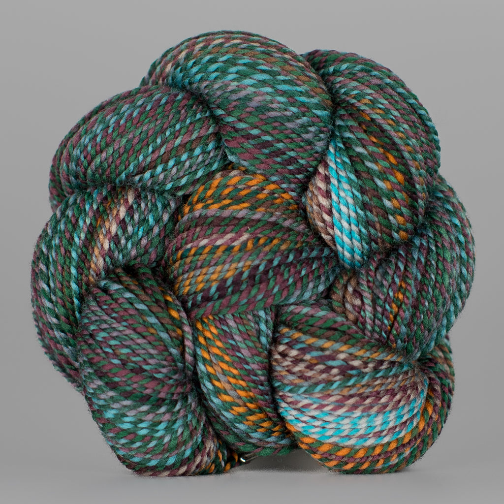 Here at the mill, we sometimes ply different colorways together to clear off bobbins with leftover yardage! When a skein or two of Wololo x Something Wicked came through, we were all INTO IT.