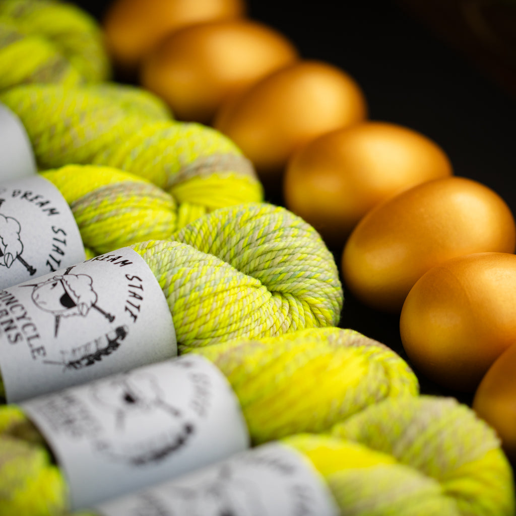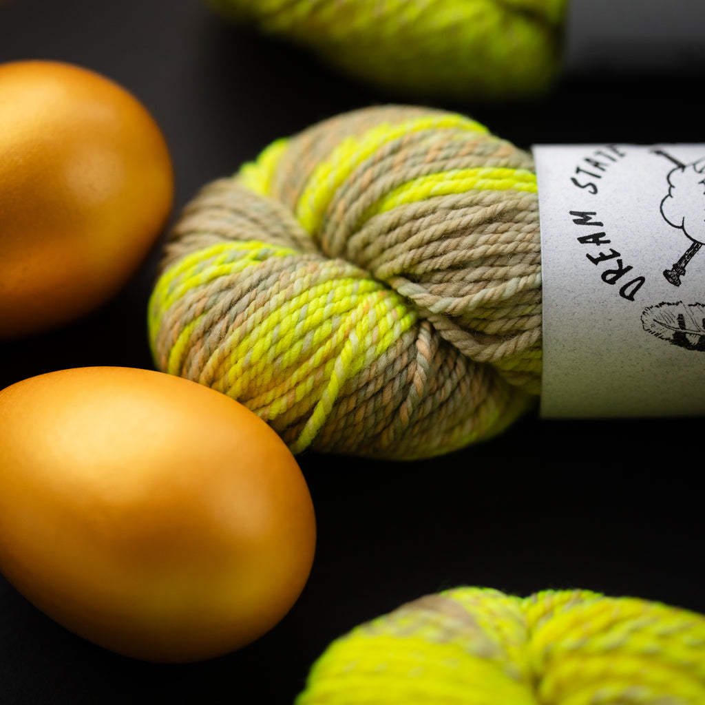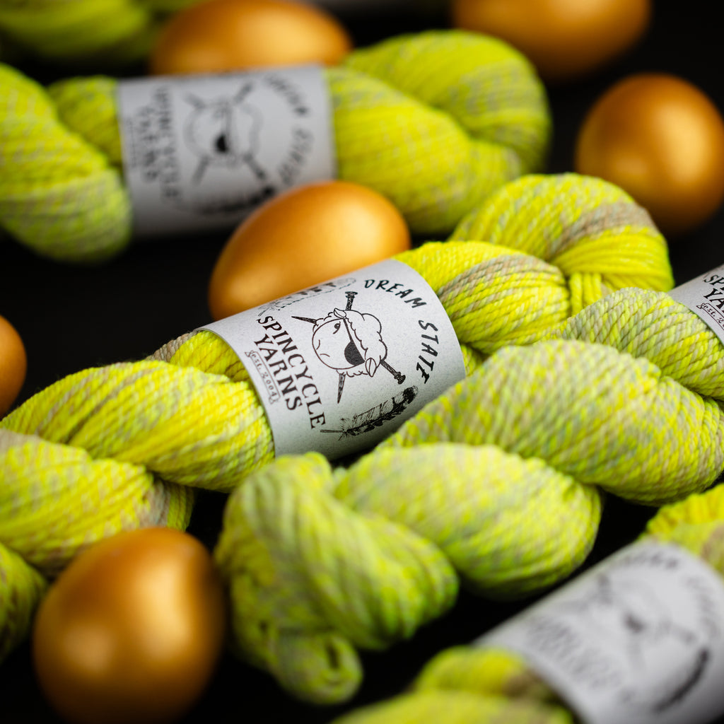 DREAM STATE • worsted weight • 100% superwashed American wool • 150 yards per skein • hand wash cold, lay flat to dry • GROWN IN THE USA • DYED & SPUN IN WASHINGTON