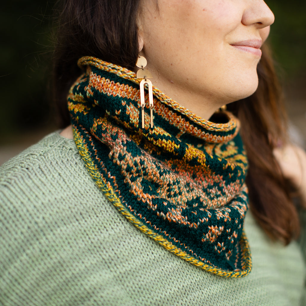 [Featured projects are Hozho Cowl by Jennifer Berg from Driftwood: A Spinster's Daughter Collection and Warp and Weft Raglan by Jessie Maede Designs]