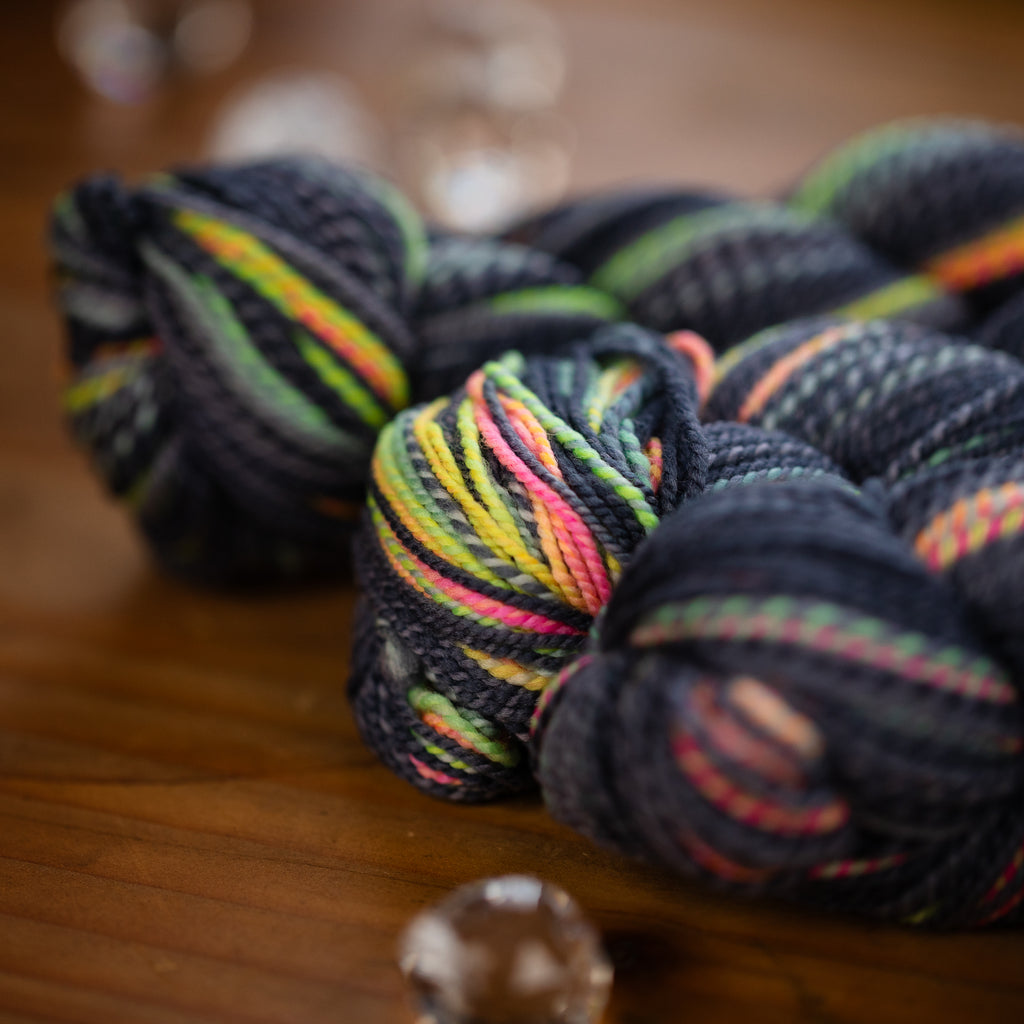 You will receive a skein from this colorway, but not the exact skein pictured. • Due to our “dyed in the wool” process, each skein we produce is unique, even within a dyelot. • If you have specific color preferences, please leave a note in the box at checkout. • We recommend buying your entire yardage requirement for your project in the same transaction, so that we can hand select skeins that match.