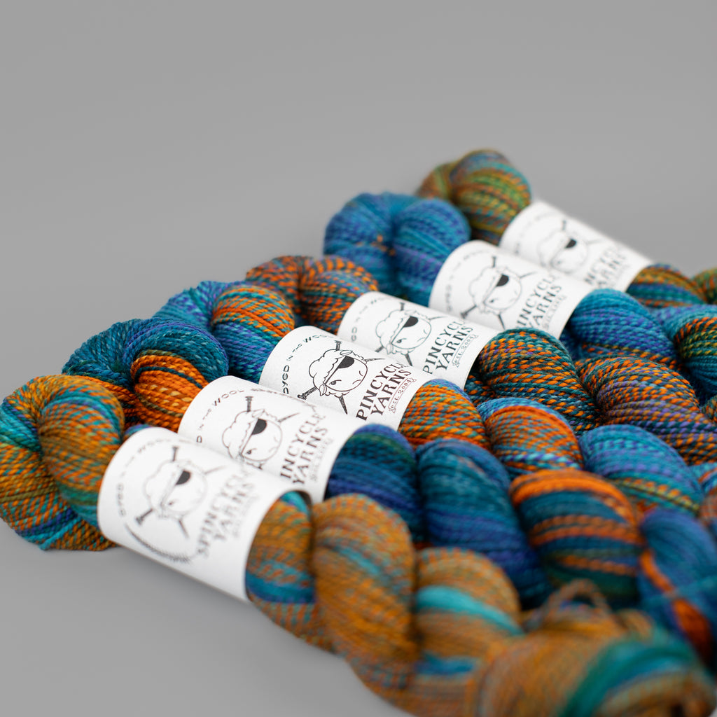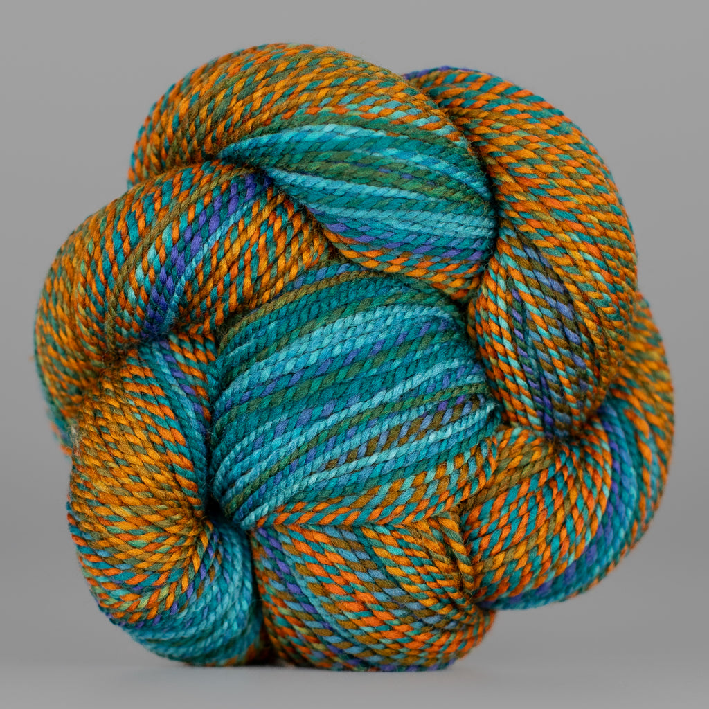 You will receive a skein from this colorway, but not the exact skein pictured. • Due to our “dyed in the wool” process, each skein we produce is unique, even within a dyelot. • If you have specific color preferences, please leave a note in the box at checkout. • We recommend buying your entire yardage requirement for your project in the same transaction, so that we can hand select skeins that match.