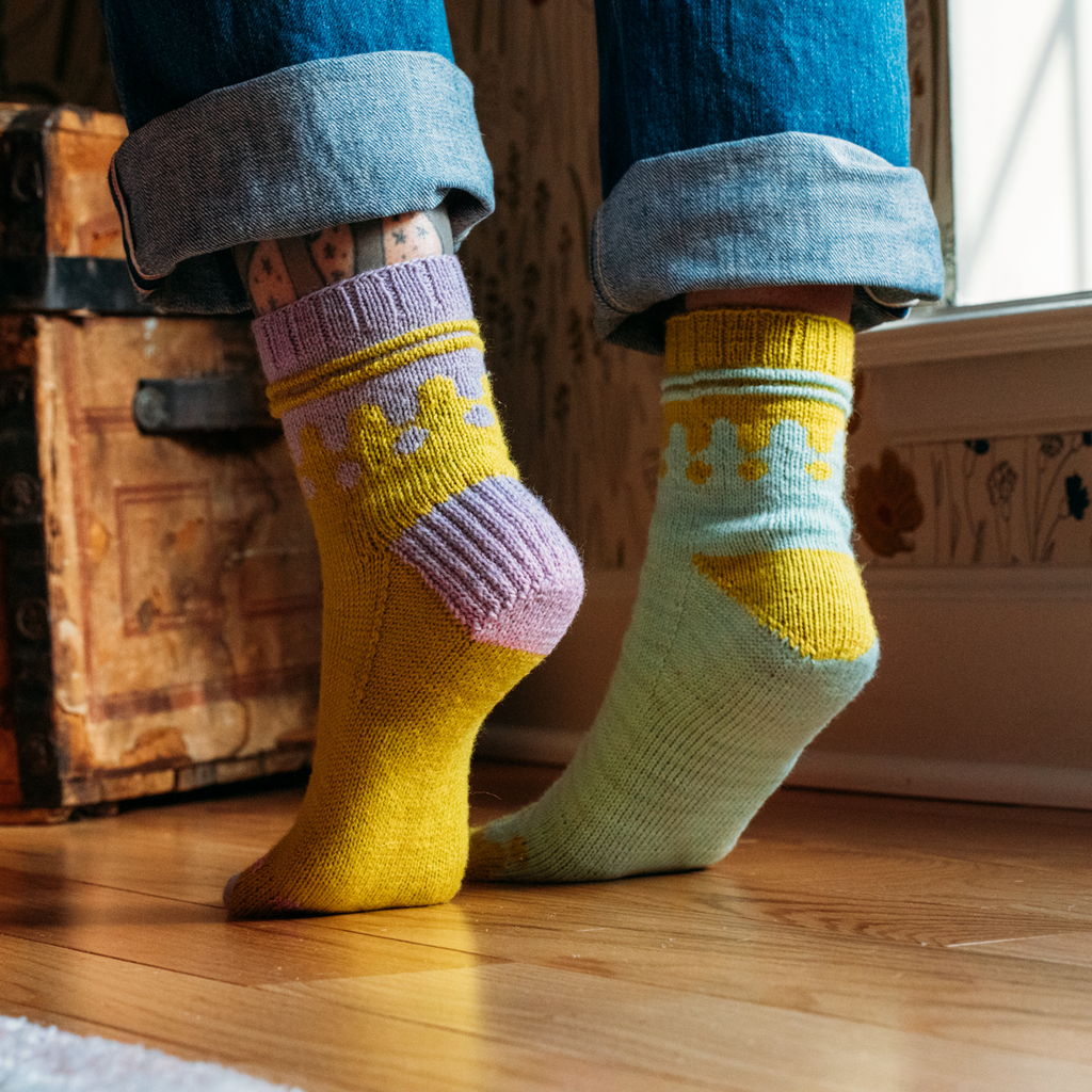 Hi there, knitter friends! For your one-click convenience, this listing is for the skeins you'll need to knit the brand new Ooey Gooey Socks in the original pattern colorways**