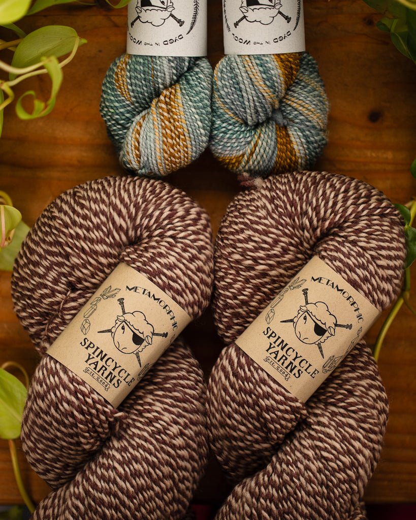METAMORPHIC • 50% recycled wool from production waste/50% new merino wool • 400 yards per skein • hand wash, lay flat to dry • MADE IN THE USA