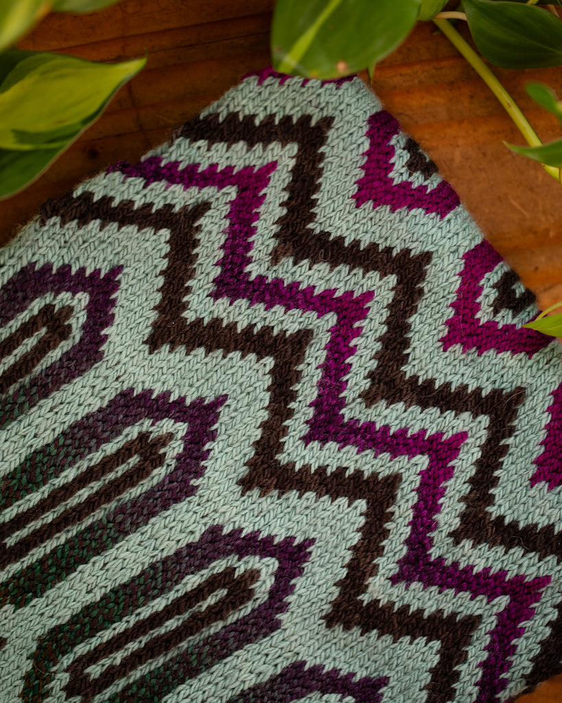 For high contrast colorwork, we recommend steam blocking to avoid color transfer. • Some dyes are notoriously difficult to set, and may exhaust some color even after our final wash. • Please keep this in mind if you are combining any hand dyed yarn with a light color in the same project. • If you plan to combine a hand dyed yarn, especially a very saturated colorway, with a lighter yarn, we suggest you test your darker skeins for possible color transfer by soaking them first. • To wash your knitwear, a quick cold water dip with a no-rinse wool wash is recommended.