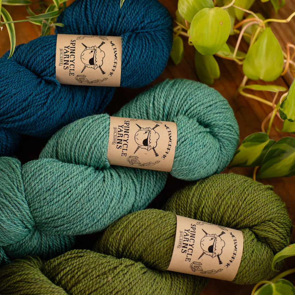 Hi there, knitter friends! For your one-click convenience, this listing is for three of the prettiest Metamorphic colorways we've spun up yet.