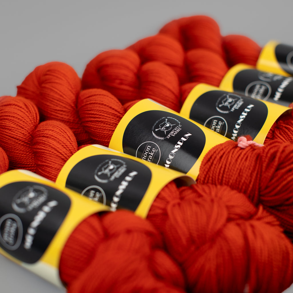 MOONSPUN • sport weight • 100% superwashed American wool • 300 yards per skein • hand wash cold, lay flat to dry • MADE IN THE USA FROM SHEEP TO SKEIN