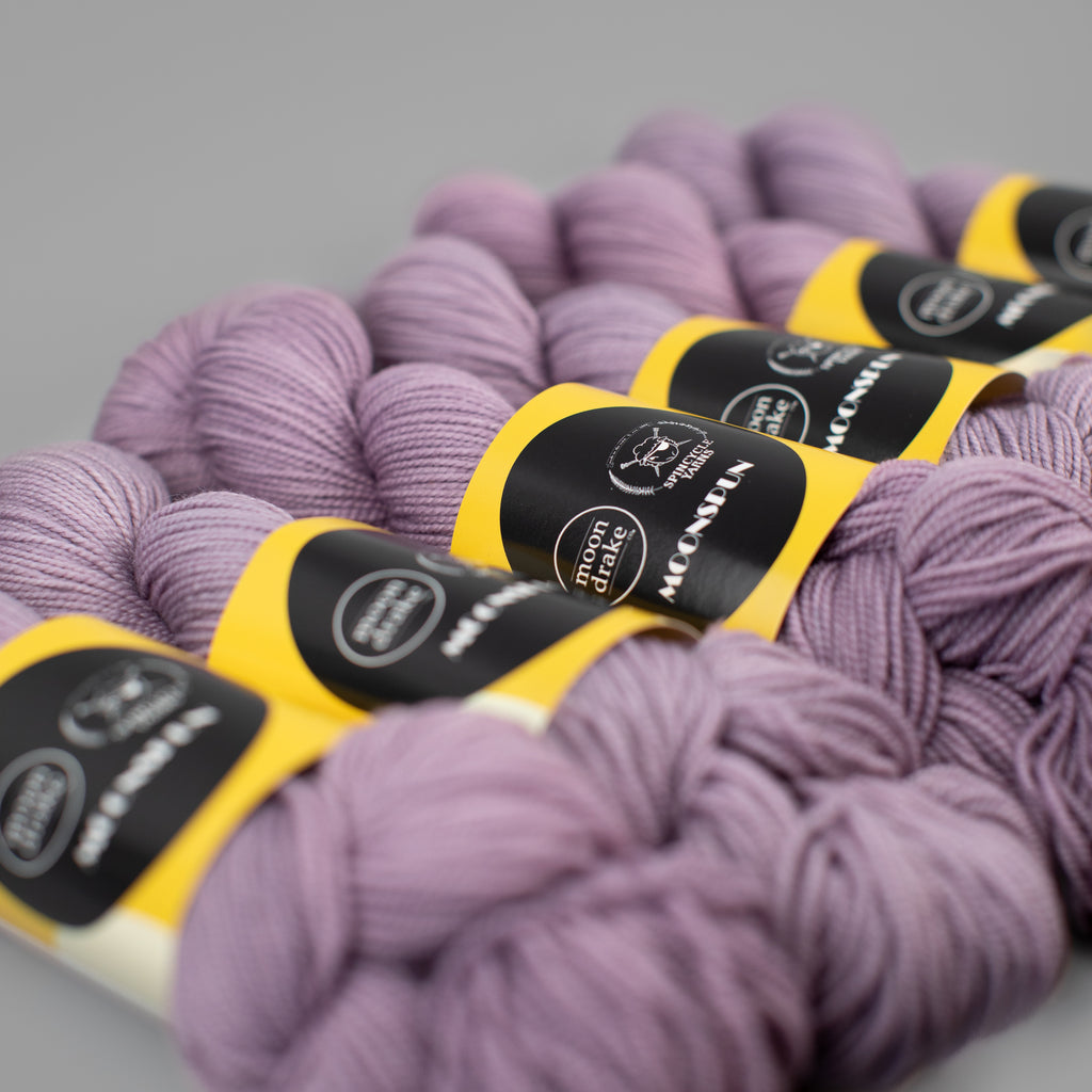 MOONSPUN • sport weight • 100% superwashed American wool • 300 yards per skein • hand wash cold, lay flat to dry • MADE IN THE USA FROM SHEEP TO SKEIN