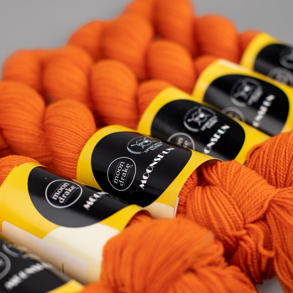 MOONSPUN • sport weight • 100% superwashed American wool • 300 yards per skein • hand wash cold, lay flat to dry • MADE IN THE USA FROM SHEEP TO SKEIN