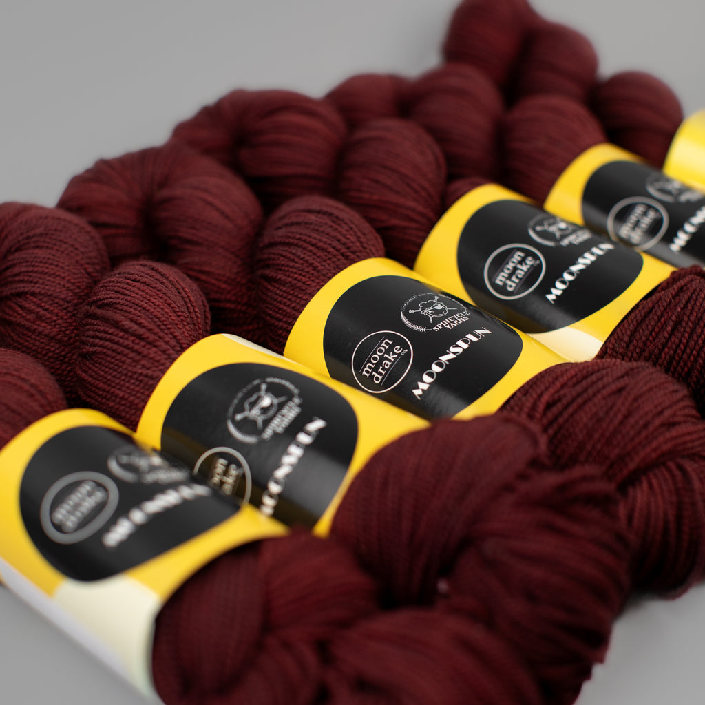 MOONSPUN • sport weight • 100% superwashed American wool • 300 yards per skein • hand wash cold, lay flat to dry • MADE IN THE USA FROM SHEEP TO SKEIN