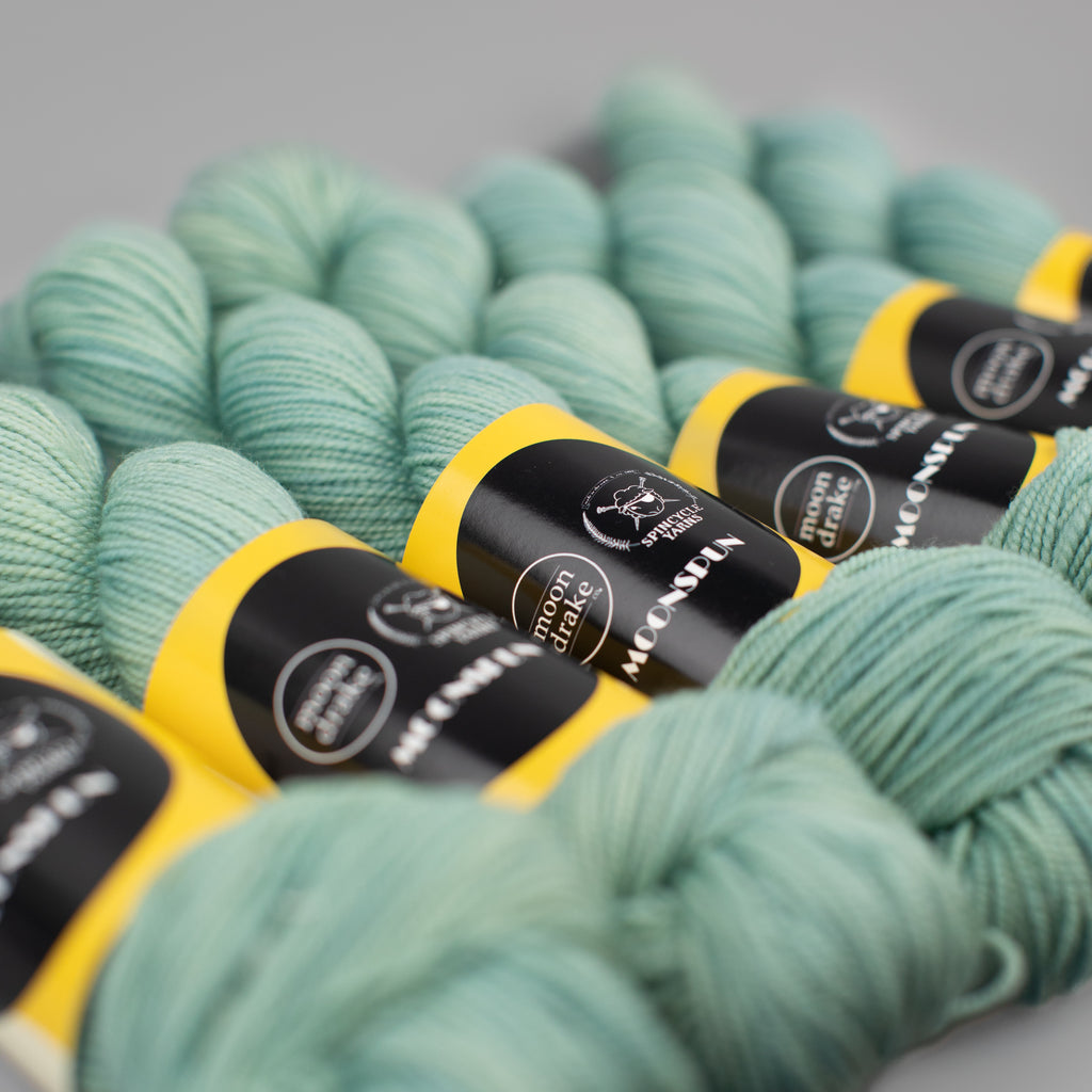 MOONSPUN • sport weight • 100% superwashed American wool • 300 yards per skein • hand wash cold, lay flat to dry • MADE IN THE USA FROM SHEEP TO SKEIN