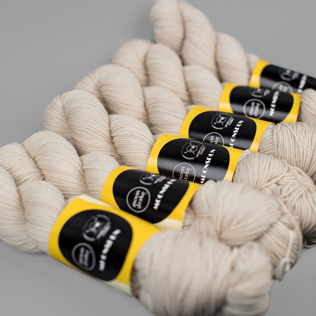 MOONSPUN • sport weight • 100% superwashed American wool • 300 yards per skein • hand wash cold, lay flat to dry • MADE IN THE USA FROM SHEEP TO SKEIN