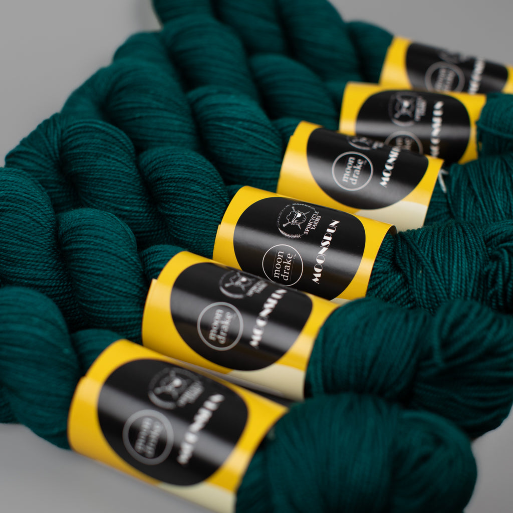 MOONSPUN • sport weight • 100% superwashed American wool • 300 yards per skein • hand wash cold, lay flat to dry • MADE IN THE USA FROM SHEEP TO SKEIN