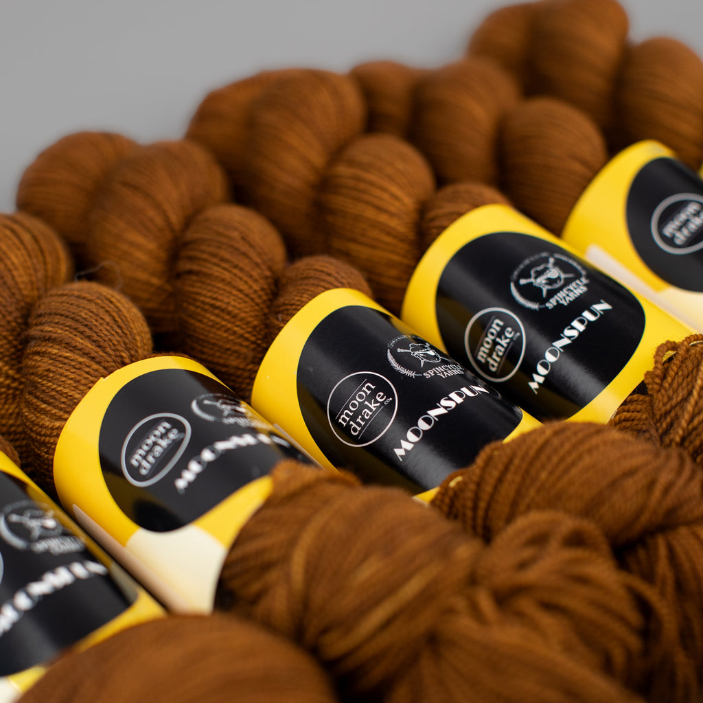 MOONSPUN • sport weight • 100% superwashed American wool • 300 yards per skein • hand wash cold, lay flat to dry • MADE IN THE USA FROM SHEEP TO SKEIN