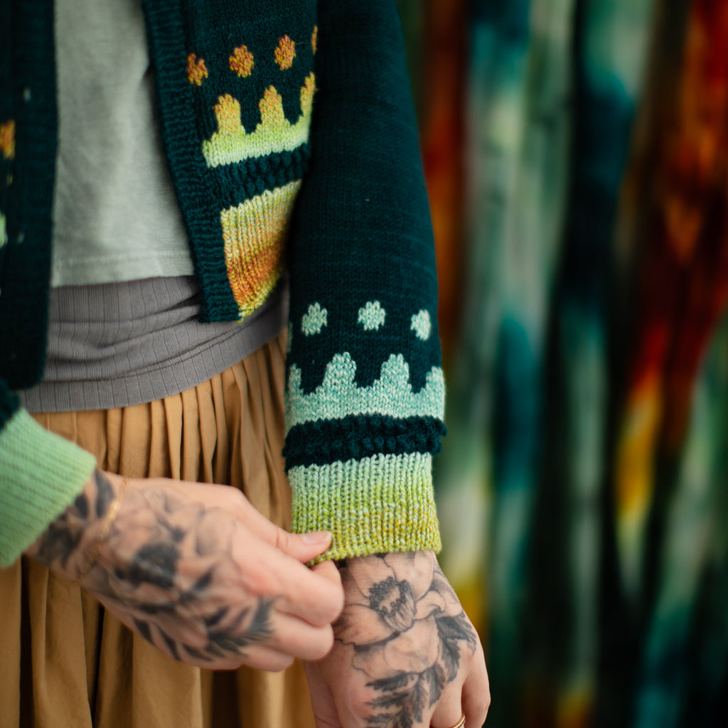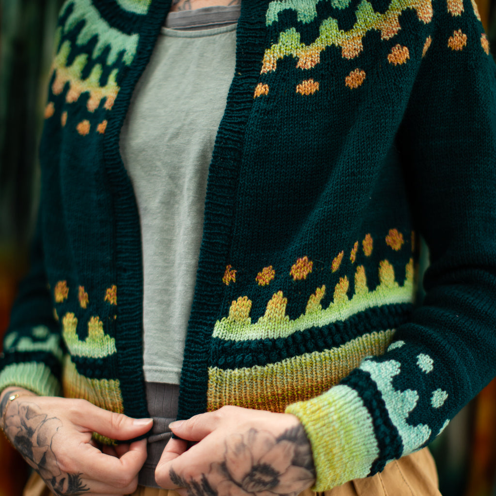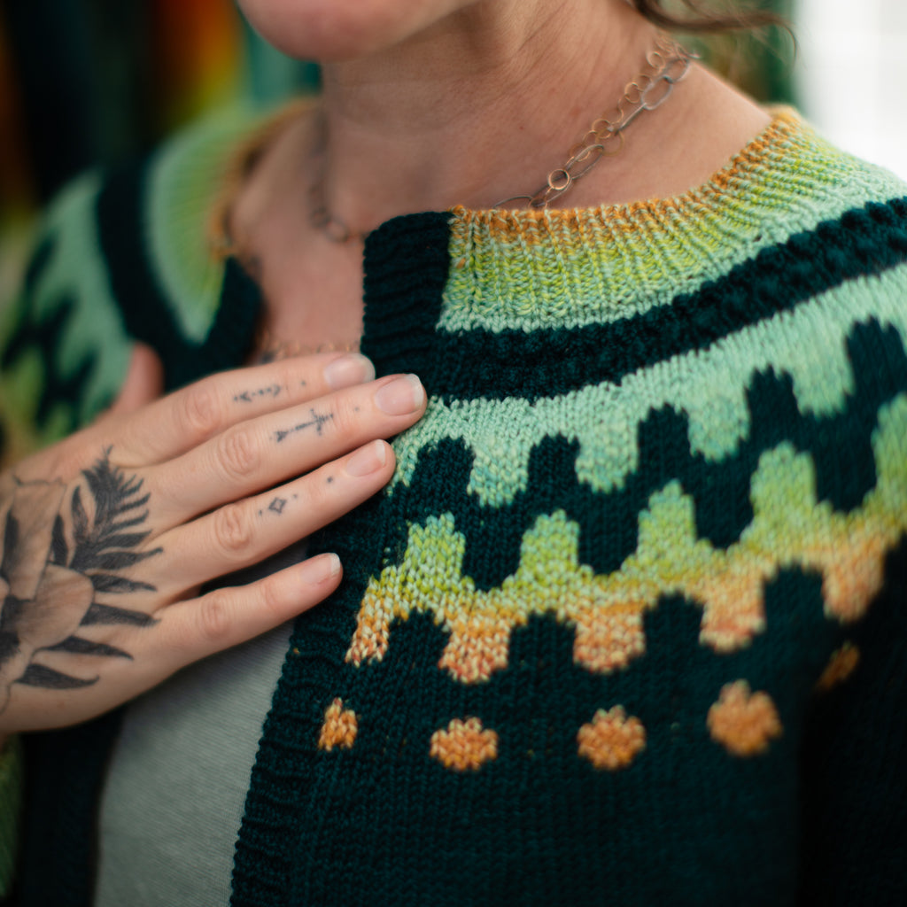 **Please note: This bundle is for the color combination that Rachel used in her sweater. While Rachel cardiganized her Ooey Gooey, the yardage provided in this bundle matches the written pattern and any yardage needed for modifications is not guaranteed.