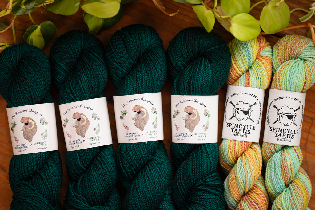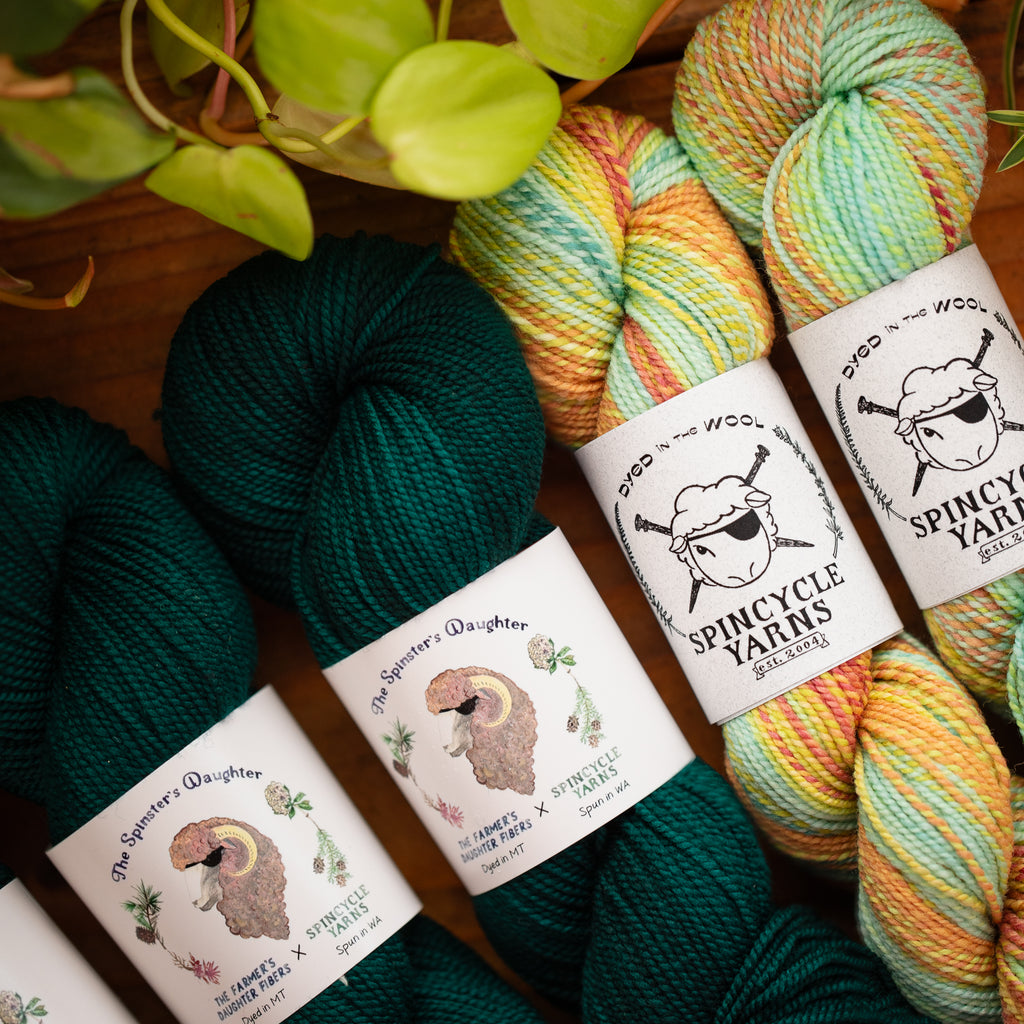 SPINSTER'S DAUGHTER SPORT • sport weight • 100% superwashed American wool • 300 yards per skein • hand wash cold, lay flat to dry • MADE IN THE USA • SPUN IN WA • DYED IN MT