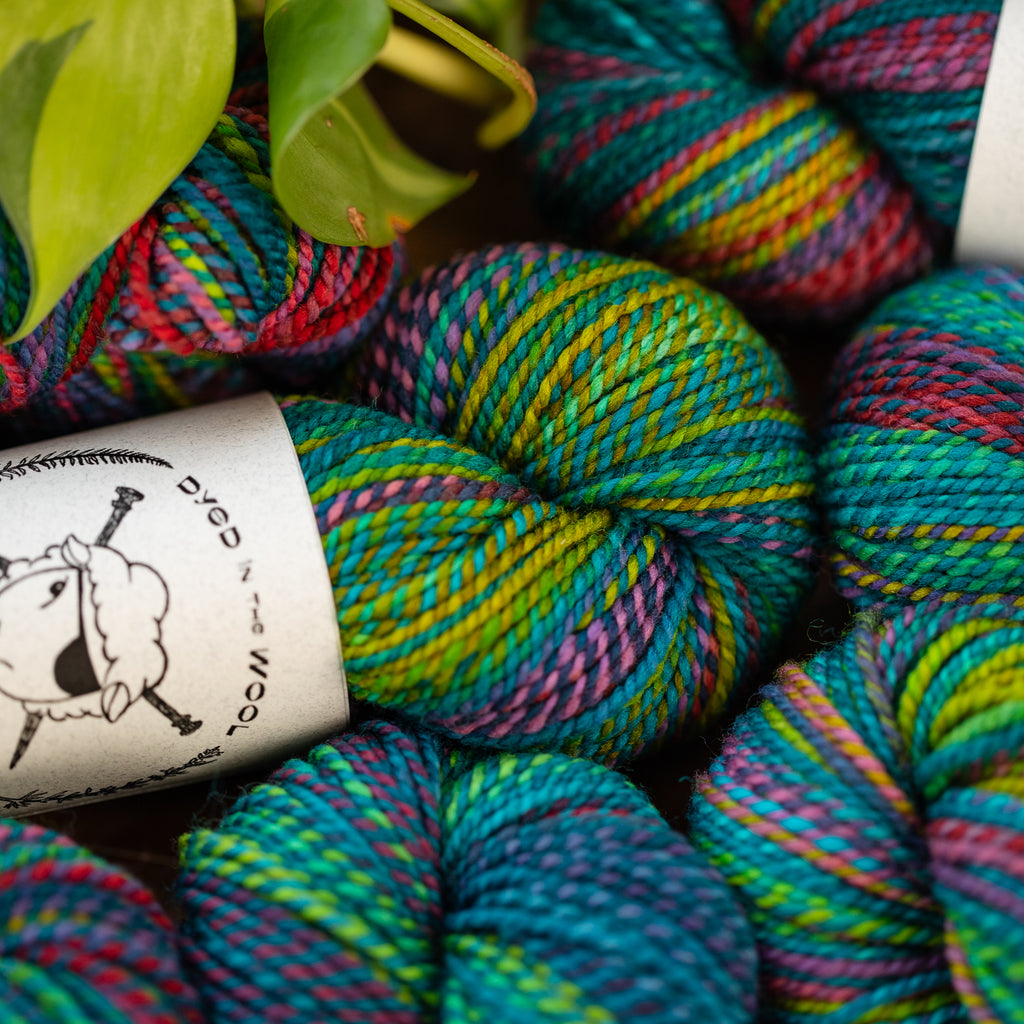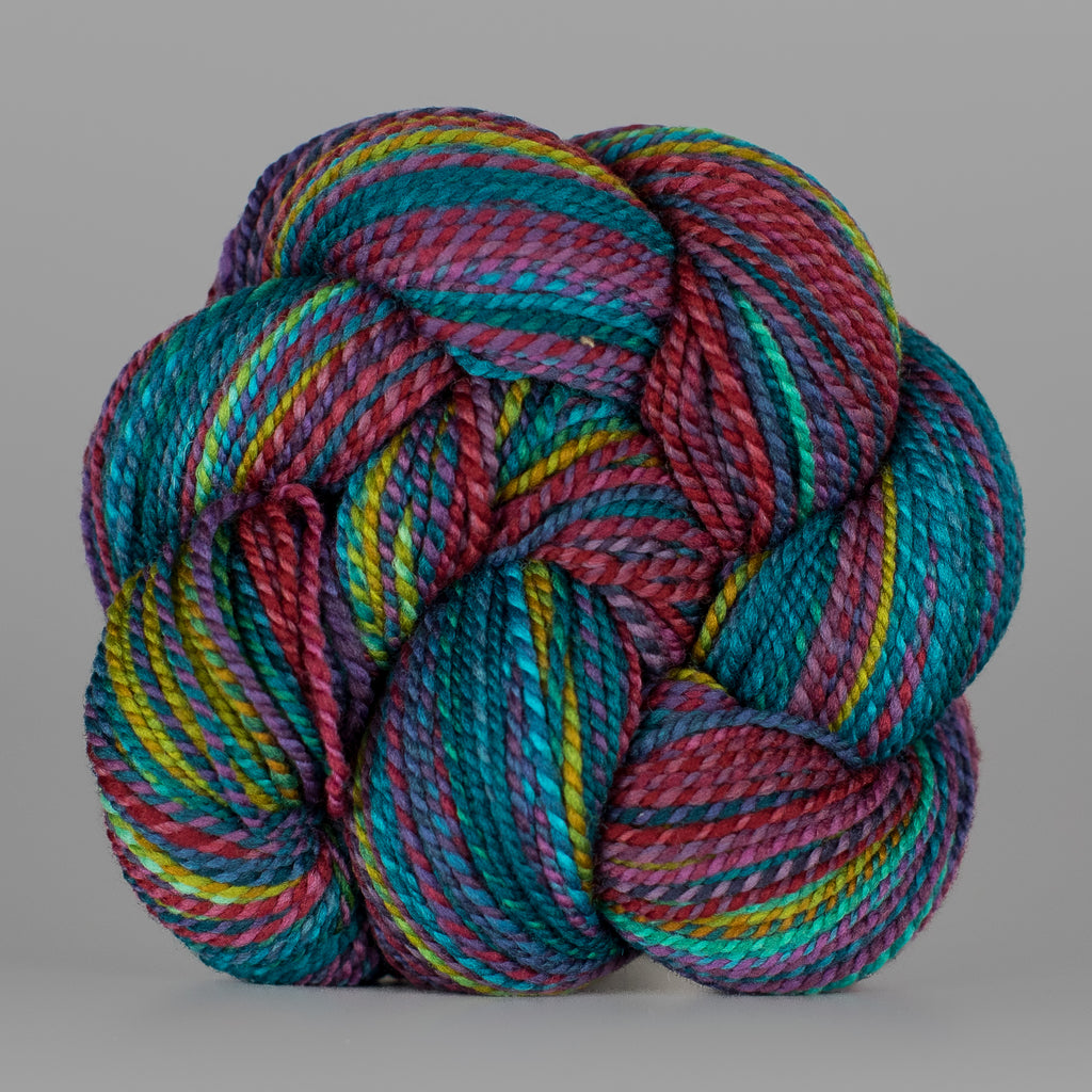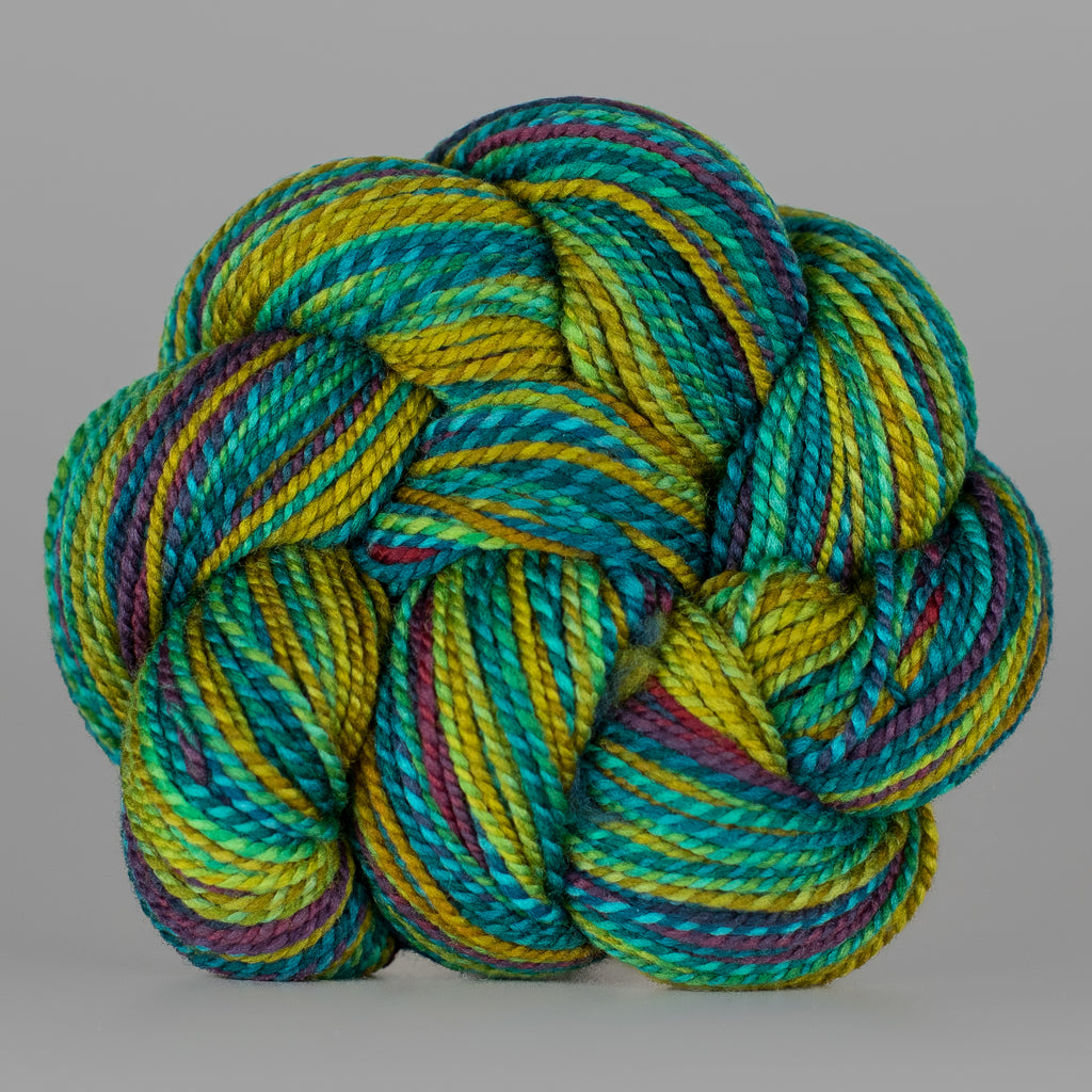 You will receive a skein from this colorway, but not the exact skein pictured. • Due to our “dyed in the wool” process, each skein we produce is unique, even within a dyelot. • If you have specific color preferences, please leave a note in the box at checkout. • We recommend buying your entire yardage requirement for your project in the same transaction, so that we can hand select skeins that match.