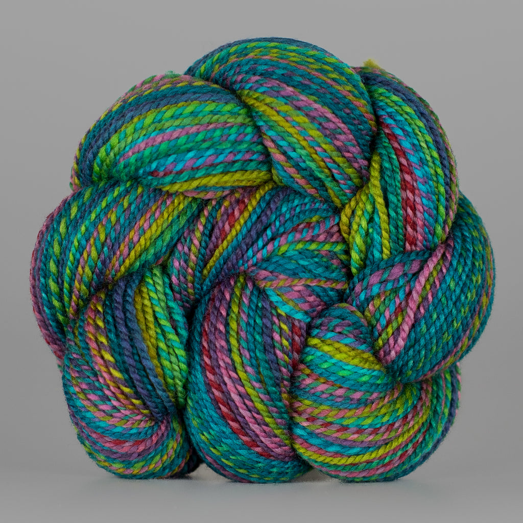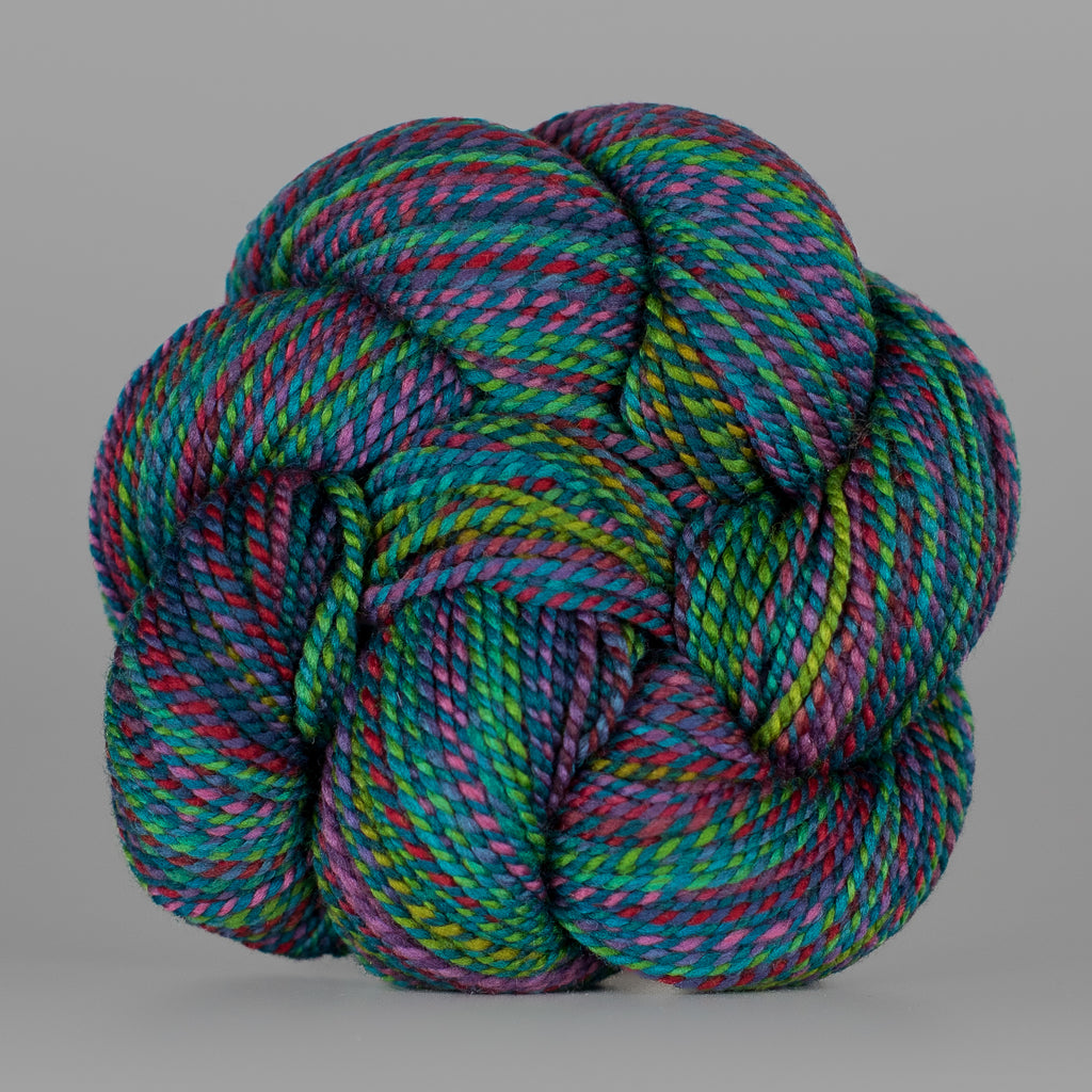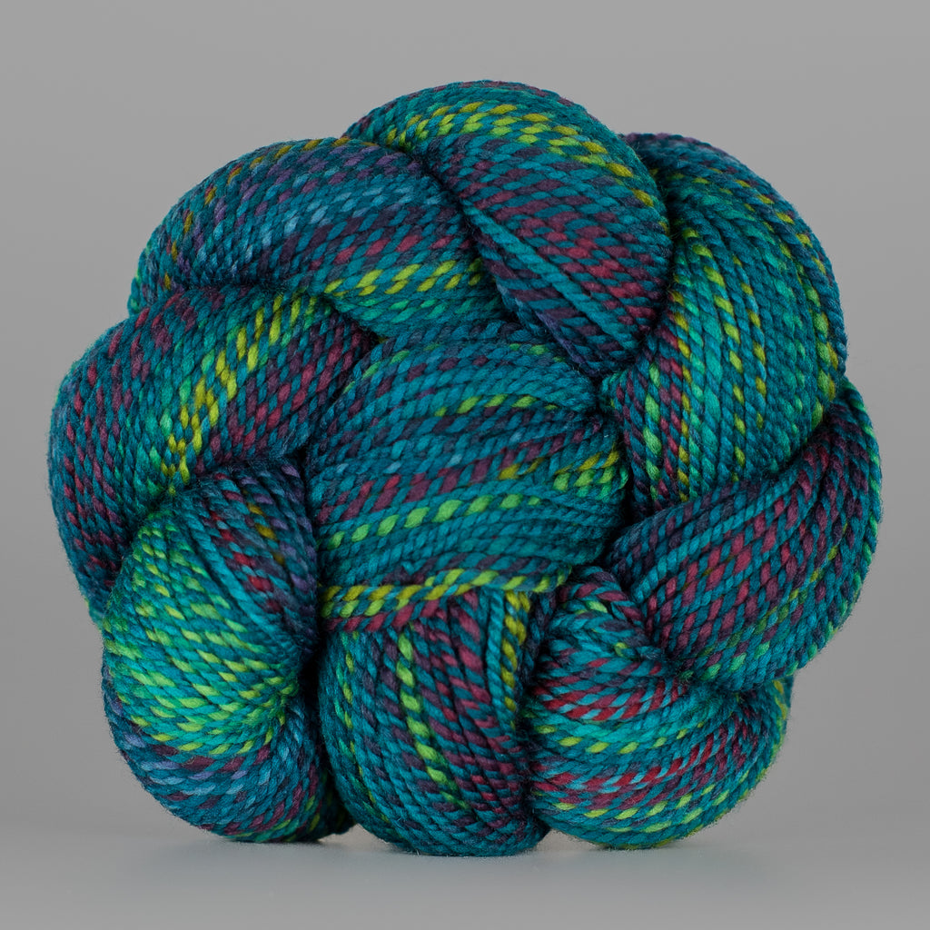 You will receive a skein from this colorway, but not the exact skein pictured. • Due to our “dyed in the wool” process, each skein we produce is unique, even within a dyelot. • If you have specific color preferences, please leave a note in the box at checkout. • We recommend buying your entire yardage requirement for your project in the same transaction, so that we can hand select skeins that match.