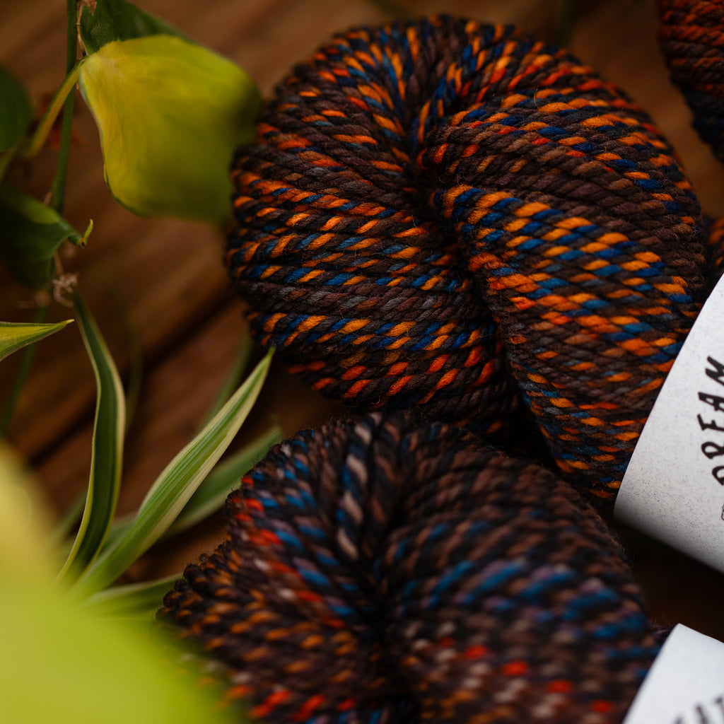You will receive a skein from this colorway, but not the exact skein pictured. • Due to our “dyed in the wool” process, each skein we produce is unique, even within a dyelot. • If you have specific color preferences, please leave a note in the box at checkout. • We recommend buying your entire yardage requirement for your project in the same transaction, so that we can hand select skeins that match.